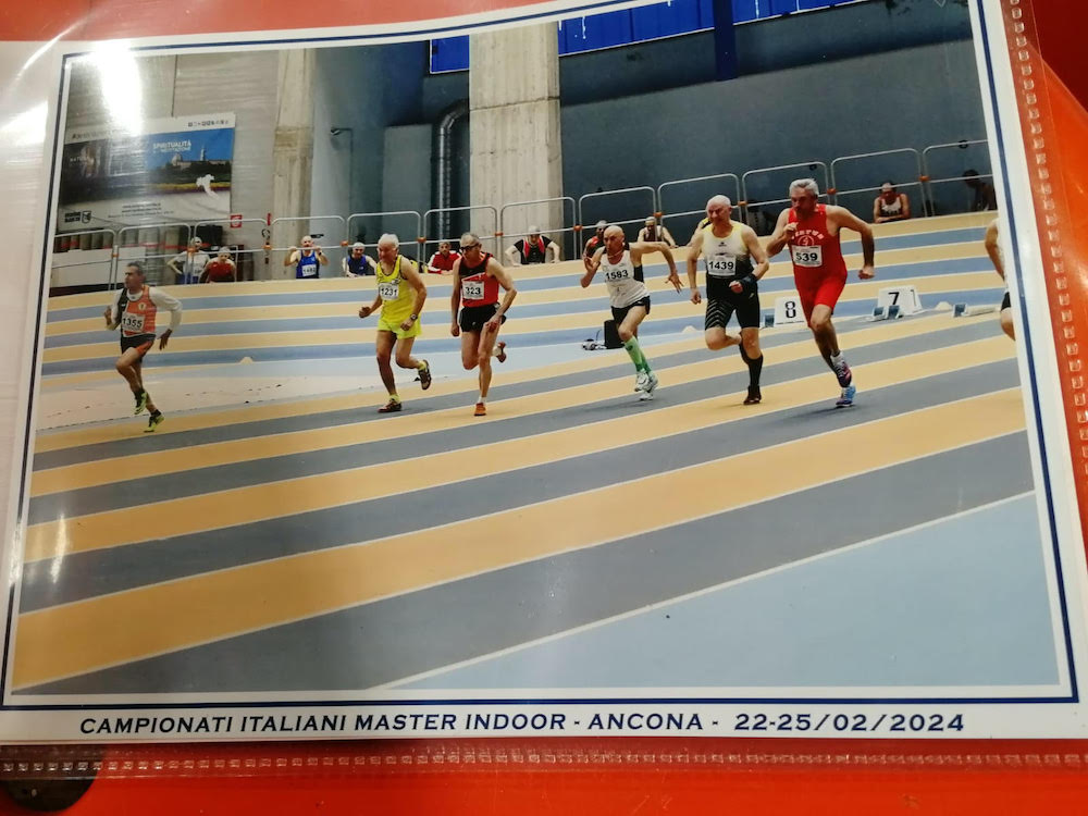 Paziente operato bilateralmente di rivestimento dieci anni fa ai campionati italiani veterani di atletica leggera.